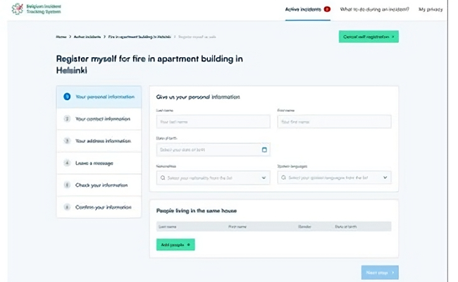 This application collects data from individuals who have immediately left the incident area, ensuring they can be reached for aftercare, witness testimonies and/or claim support.